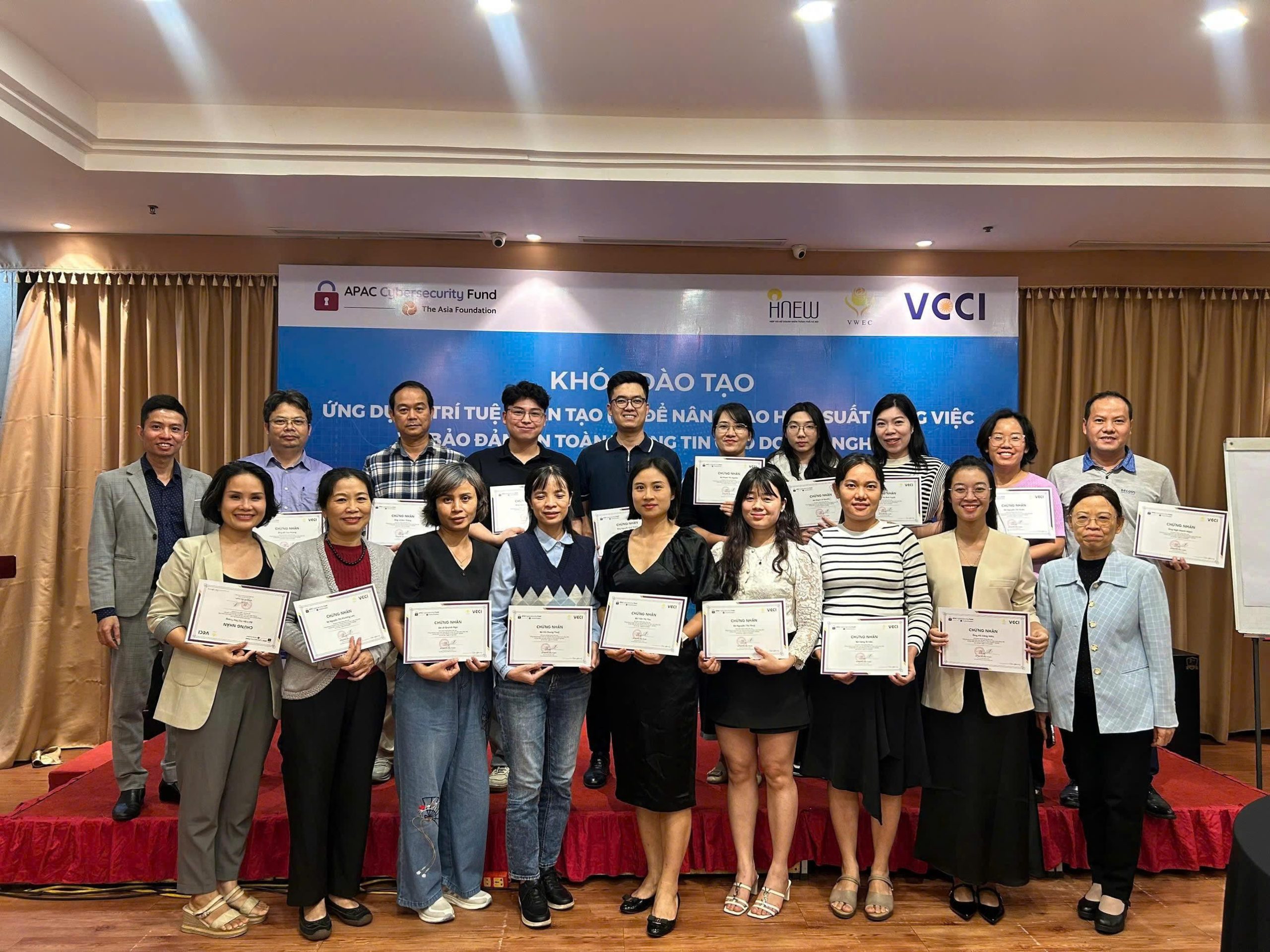 Kết thúc khóa học, các học viên đã được Ban tổ chức trao Giấy chứng nhận hoàn thành khóa đào tạo, ghi nhận tinh thần học tập nghiêm túc và nỗ lực nâng cao năng lực số. Trong thời gian tới, HNEW sẽ tiếp tục đồng hành cùng hội viên trên hành trình nâng cao năng lực số, phát triển bền vững và hội nhập hiệu quả trong thời đại công nghệ 4.0.