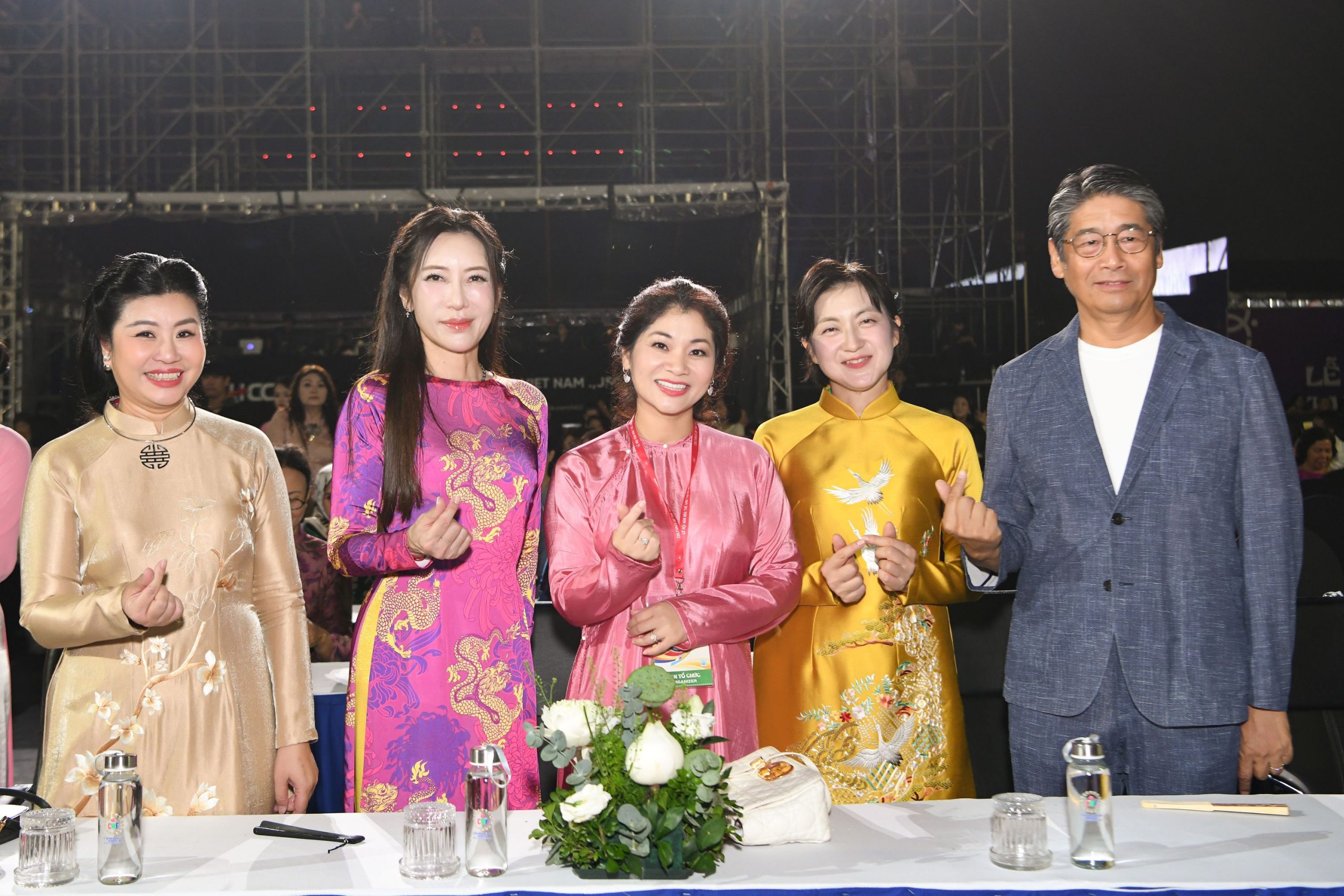 Với tinh thần “Kết nối – sẻ chia – lan tỏa yêu thương”, BTC đã đấu giá thiện nguyện và quyên góp để ủng hộ đồng bào các địa phương bị ảnh hưởng bởi mưa lũ, trong đó có 3 sản phẩm đẹp nhất được đấu giá thuộc các NTK Văn Hằng (thương hiệu áo dài Desilk ủng hộ 1 áo dài và 1 khăn) và NTK Anh Thư (thương hiệu áo dài Ngân An).