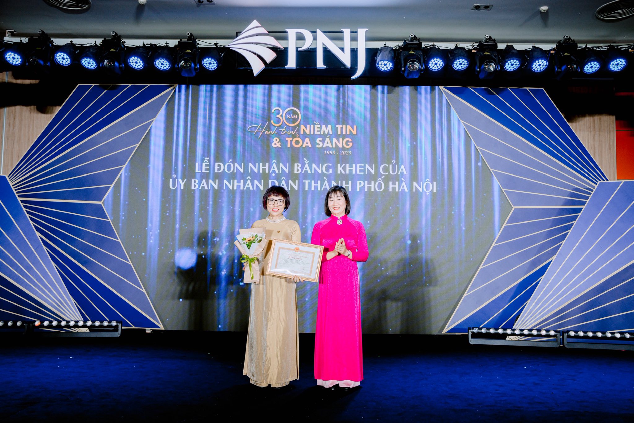 Nhân dịp kỷ niệm 30 năm thành lập (18/9/1995 – 18/9/2025), PNJ Chi nhánh Miền Bắc và Chị Phạm Thúy Dung đã vinh dự được nhận bằng khen của UBND TP. Hà Nội vì đã có thành tích xuất sắc đóng góp vào sự nghiệp xây dựng và phát triển kinh tế – xã hội của địa phương và Thành phố.