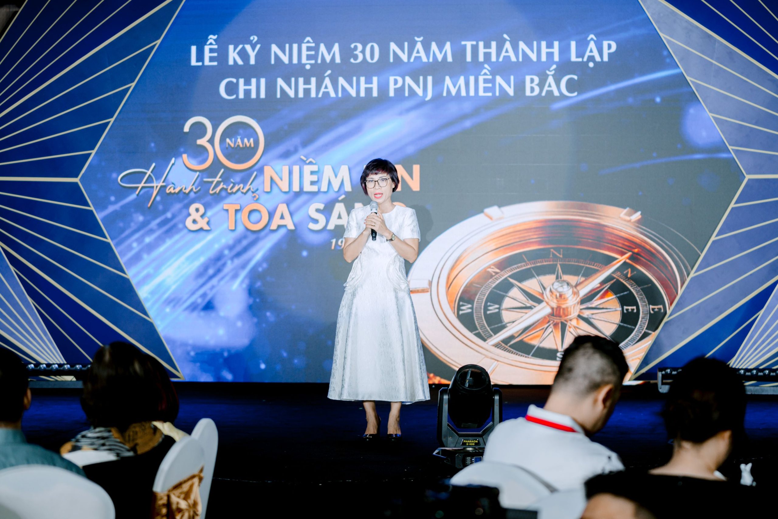 Lễ kỷ niệm 30 năm thành lập PNJ Miền Bắc gồm 3 chương: Khai mở hành trình, Vững vàng niềm tin và Tỏa sáng vươn mình. Gây ấn tượng có lẽ là chương Khai mở hành trình khi các khách mời đã được lắng nghe Chị Phạm Thúy Dung – Giám đốc khu vực phía Bắc chia sẻ câu chuyện truyền cảm hứng về hành trình 30 năm của PNJ Chi nhánh Miền Bắc.