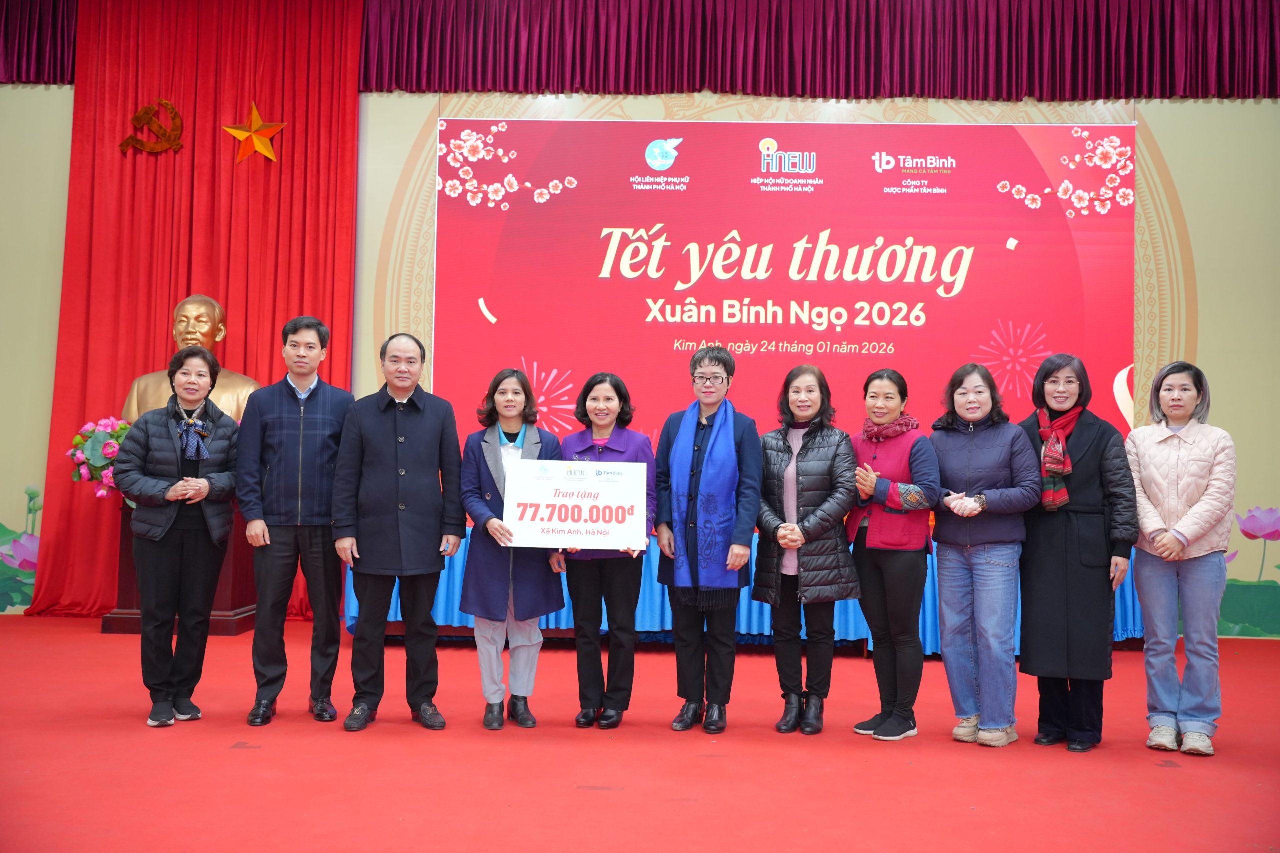 Tặng quà Tết cho phụ nữ có hoàn cảnh khó khăn là hoạt động thường niên được HNEW thực hiện từ nhiều năm qua. Thấu hiểu những khó khăn đó, với mong muốn giúp các chị em đón một cái Tết ấm áp, trọn vẹn hơn, HNEW với sự tài trợ của Công ty Dược phẩm Tâm Bình, Công ty TNHH Sản xuất và Thương mại Đại Phúc và các chị hội viên trong Hiệp hội đã tổ chức chương trình “Tết yêu thương”, trao quà Tết cho chị em phụ nữ có hoàn cảnh khó khăn tại hai xã Đa Phúc và Kim Anh.