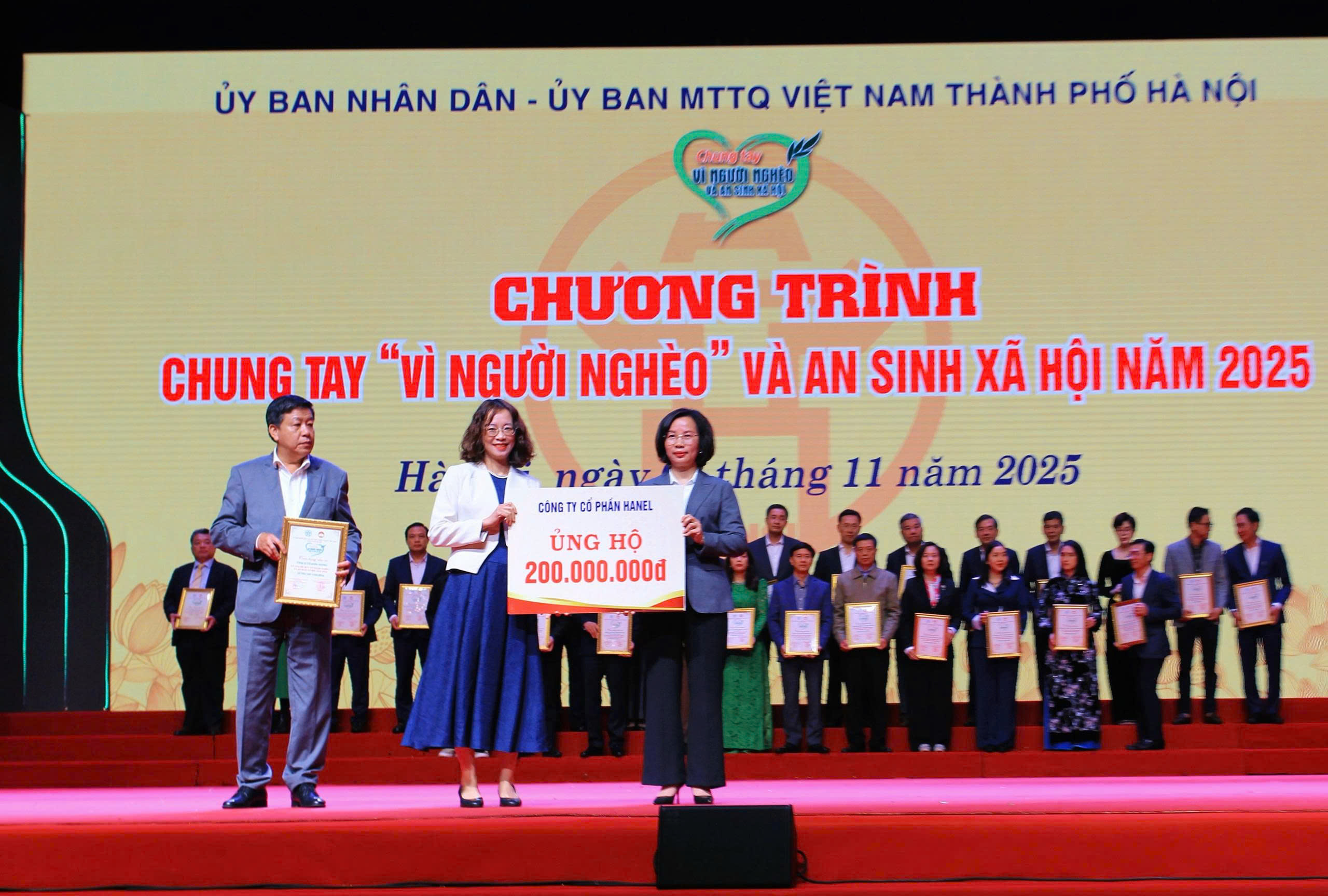 Tối 3/11, UBND, Ủy ban MTTQ Việt Nam TP. Hà Nội đã tổ chức Chương trình Chung tay “Vì người nghèo” và an sinh xã hội năm 2025 tại Cung Văn hóa Lao động Hữu nghị Việt Xô (Hà Nội).