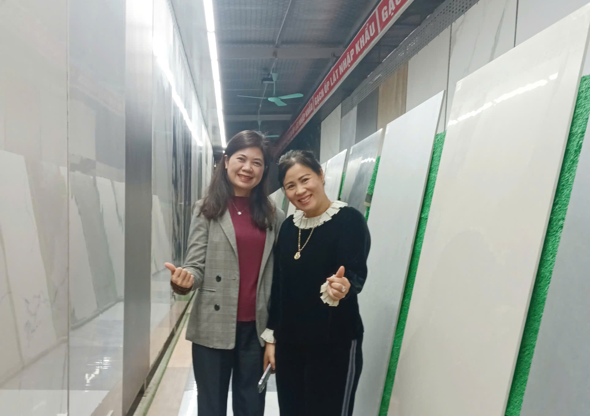 Đón tiếp Đoàn thẩm định tại Công ty TNHH Gạch ốp lát Khánh Linh (Công ty Khánh Linh) là Chị Đỗ Thu Thủy – Phó Giám đốc Công ty và Chị Nguyễn Thị Mỹ Thanh – Phó Giám đốc Công ty.